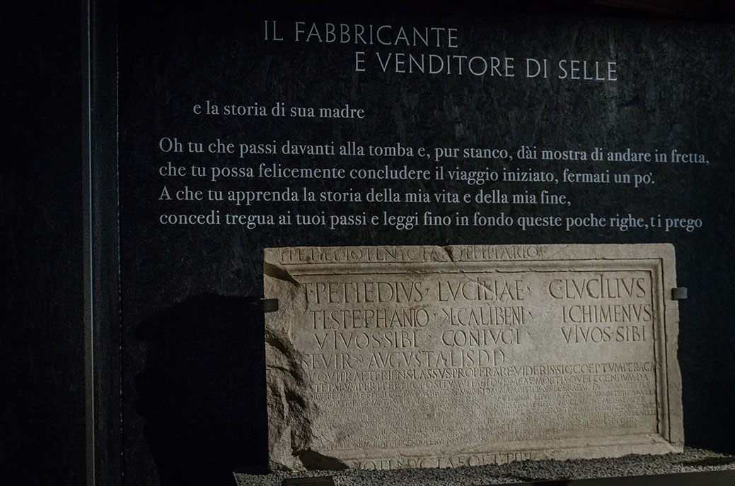Più avanti troviamo epigrafi che raccontano di mestieri in particolare c'è l'epigrafe di un venditore di stelle ha dedicato una iscrizione a sua madre e che chiede al viandante di soffermarsi a leggere la sua storia prima di andare avanti.