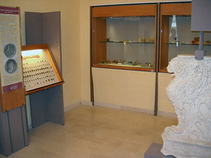 Al primo piano si accede alle sale espositive, dove è documentata la storia della città dalla preistoria al medioevo attraverso i reperti rinvenuti nel corso dei secoli.